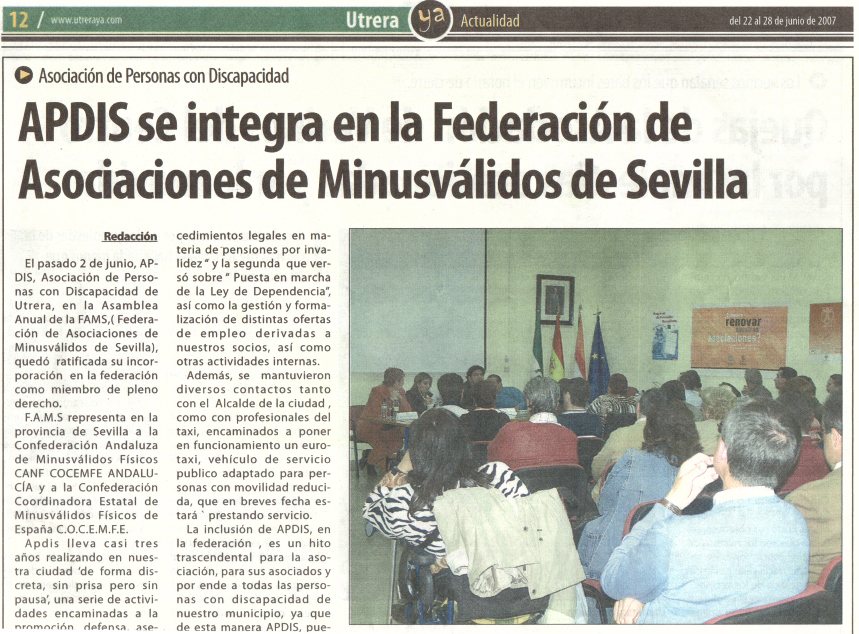 III Jornada APDIS. La Familia apoyo a los discapacitados 9-10-07,EL CORREO ANDALUCÃA